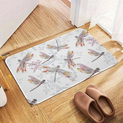 Flowers And Dragonflies Bathroom Rugs Winter Bath Mat Absorbent Non Slip Bathroom Mat Christmas Soft Floor Carpet 16x20 Inches