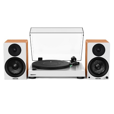 This plug and play system easily connects your turntable to the speakers through RCA without the need for a separate amplifier or AV receiver. Once the record finishes, a simple push of the button on the included remote control lets you switch over to Bluetooth to stream all your favorite music apps.