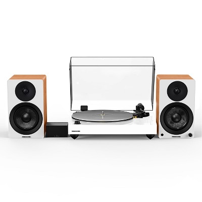 Simple Audio Setup This plug and play system easily connects your turntable to the speakers without the need for a separate amplifier or AV receiver.
