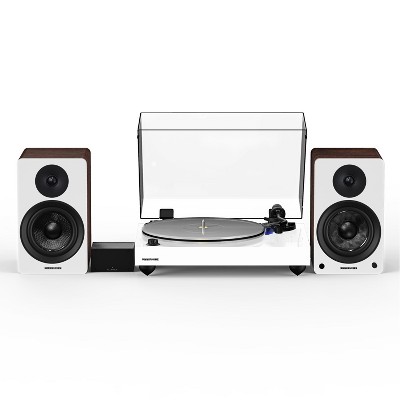 Simple Audio Setup This plug and play system easily connects your turntable to the speakers without the need for a separate amplifier or AV receiver.