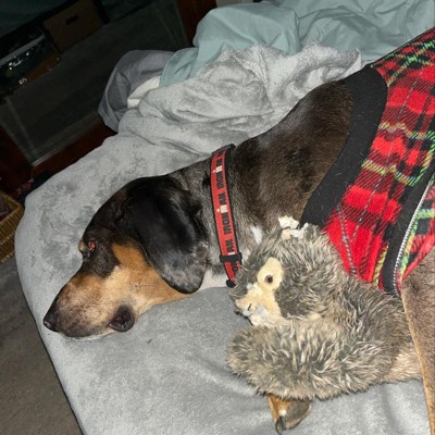 Absolutely the best toy we’ve bought for our hound dog. Most toys last a few days at best, but this one is going on a year! With the squeaker still! There is something about its realness that makes him take it a bit easier on it or love it a bit more. He is currently sleeping with it as I write this (although ears have been chewed off). It is almost like a stuffie you’d get for a child, but made a bit tougher and with a squeaker.