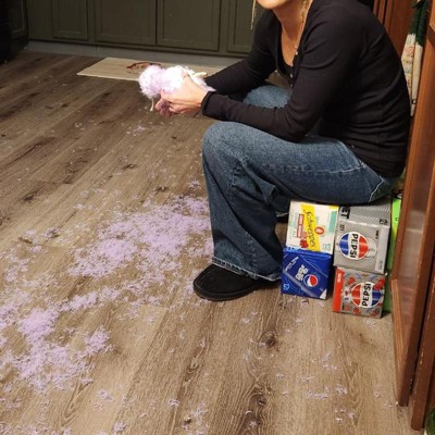 You will be finding fuzz everywhere for eternity and it sticks to everything. I had no idea what this toy was. You pluck the top layer of hair out to reveal a different color of fur. What a mess! And it’s hard to pluck.