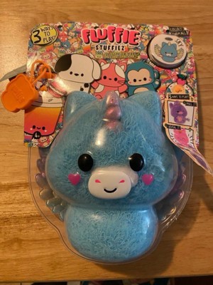 [This review was collected as part of a promotion.] This fluffie stuffie is an adorable little Pegasus that starts out blue. You pull all his fluff off and reveal that he’s another color all together! My 7 year old enjoyed pulling all the fluff off and putting it in the packaging it came with to fill. Cute idea.