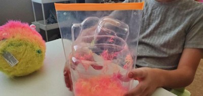 [This review was collected as part of a promotion.] While the idea is cute and fun. Holy moly there is fluff everywhere! Trying to stuff the fluff pieces back into the bag is almost impossible. Static charged, stuck to the skin, and the bag is rigid, so it isn't easy to open and hold open to put in the fluff. We found that putting the fluff in a bowl to dump into the bag was a little bit easier to control. Some of the pieces are easy to pull, some harder. We did find that there are some that were sewn in at the top that can't be pulled. This stuff is the fluffy equivalent to glitter. I'll be finding them eveywhere for weeks. Kid might be amused for an hour or so, but it will be a parent's nightmare to find that bag broken open and fluff scattered throughout the place.