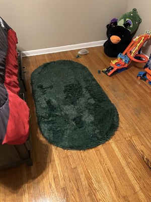 Fluffy Oval Area Rug 2.6x5.3 Ft, Soft Fuzzy Shag Carpet for Bedroom Bedside, Non-Slip Plush Shaggy Rug black 2.6x5.3ft
