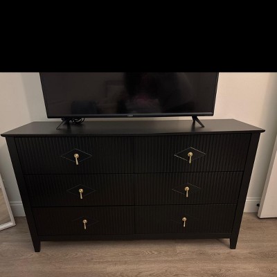I was hesitate to purchase this dresser because there were no reviews but I took the risk and did anyways. To start off, the drawers are alittle smaller than what I was expecting. I purchased the 6 drawer dresser and it does not fit a standard drawer organizer. But it's sturdy enough to do its job. The assembly also took a while and it heavy if you plan on moving it. y yourself. Overall I'm satisfied with my purchase and the dresser looks exactly like the photos.