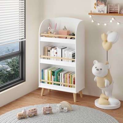 60 Wide Fluted Bookcase with Drawers, 70.8" 6-Tier White Bookshelf, Waved Design Storage Cabinet & Open Shelf for Living Room Office, Natural
