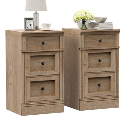 Fluted Farmhouse Night Stand with Charging Station, 23" Mid-Century Modern Nightstand, 2 Drawers End TableSet of 2
