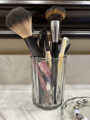 A: Hi Ashsquirrel - Thank you for reaching out to us with your query about the Fluted Glass Bathroom Tumbler Light Green - Hearth & Hand. The Tumbler is made of Glass and can hold 12.7 Ounces in it. It is a multipurpose Tumbler and can be used for Drinking too. I hope this information was helpful. Happy Shopping! - Josh