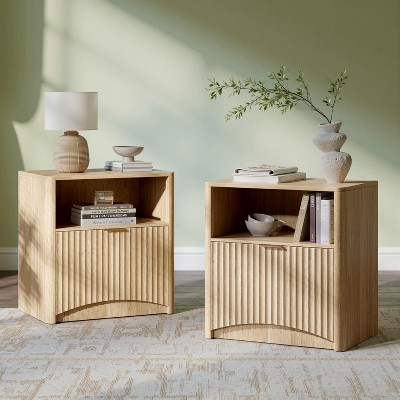 Fluted Nightstand, Mid Century Modern Bedside Tables, Night Stands for Bedroom Sofa Office