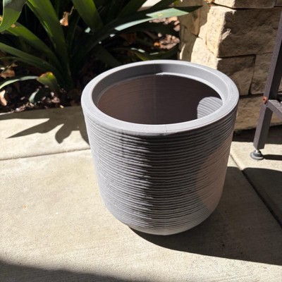 Gray fluted outdoor planter