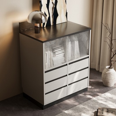 Fluted Panel Wooden Dresser, 6-Drawer, Natural Wood - Minimalist Oak Finish, 50lb/Drawer, Anti-Tip Kit