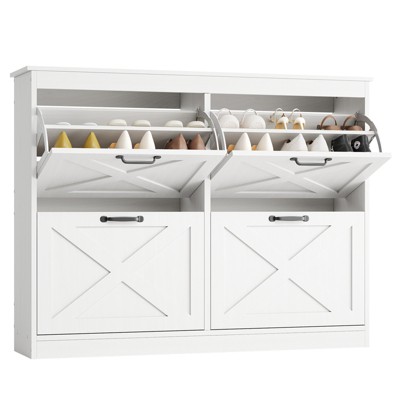 Fluted Shoe Cabinet for Entryway, 4-Flip Drawer Storage Organizer with Metal Legs, Narrow Freestanding Hidden Shoe Rack for Home Storage
