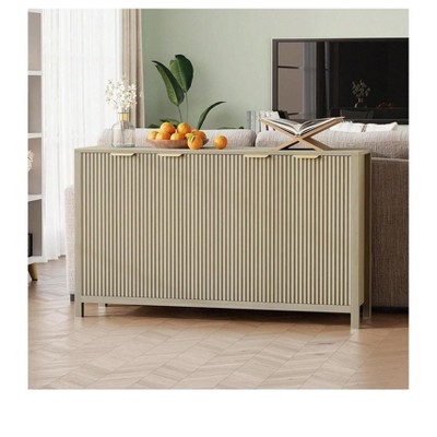 Fluted Sideboard Buffet Cabinet, 55 Inch, Adjustable Shelves and Spike Feet, Farmhouse Wood Accent for Kitchen Living Room Oak