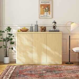 - 【Modern Yet Timeless Look】Featuring a graceful curved outline and distinctive wave-textured doors, this sideboard uses a push-to-open design for easy functionality and a flawless outward appearance, fitting perfectly into both classic and contemporary interiors.
