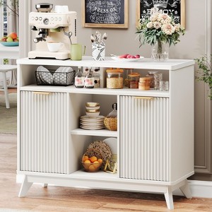 Fluted Storage Cabinet, 39" Sideboard Buffet Cabinet, Multifunctional Console Table Coffee Bar, White
