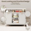 This buffet cabinet features an elegant fluted door design—with sleek lines for unique style and easy cleaning—paired with golden metal handles that add a touch of luxury while ensuring smooth opening/closing, blending beauty and practicality to elevate your home’s look. Measuring 13.77"D x 39.09"W x 33.26"H, it offers ample storage with three adjustable shelves (each with three height settings), letting you customize space to organize kitchen supplies and keep dining areas tidy. Its top is an wear-resistant, easy-to-clean imitation marble panel; the cabinet body has reinforced curved columns and high-quality solid wood legs for stability, plus a natural elegant charm.