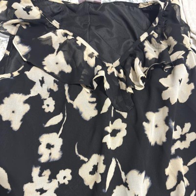 A: The dress features a ruffled V-neckline, adding a stylish touch to the design.
