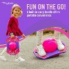 The Flybar Pogo Trick Ball is a versatile and fun toy for kids aged 6 and up, supporting up to 160 lbs. It combines a balance board, pogo stick, and jump ball into one thrilling jumper. With vibrant colors, heavy-duty grip tape for maximum traction, and a pump for easy inflation, it ensures long-lasting fun. Designed to withstand rough play, this toy encourages physical activity, helping kids burn calories and improve motor skills. Additionally, it comes with free replacement bounce balls to keep the fun going.