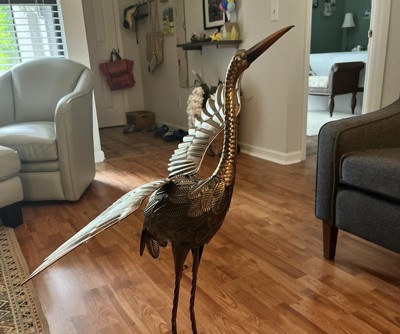 Flying Crane Garden Statue - Lawn Ornament - Handcrafted Bird Decor - Easy to Assemble Metal Yard Art with Stakes Included by Pure Garden