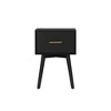 Add a touch of sophistication to your space with the Flynn End Table, designed in a rich Black finish. This table boasts ball-bearing metal drawer glides and English dovetail construction, ensuring lasting quality. With a felt-lined drawer, this end table is perfect for storing small items securely, while its fully finished front and back make it a versatile addition to any room.