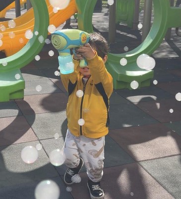 Its about time someone made a fog bubble gun. Who doesn't love playing with bubbles! Super cool! I just wish they sold fog refills for it.