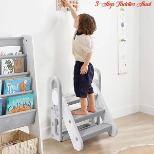 - 😃【Foldable design】: Our toddler foldable 3 step stool features a convenient folding design, providing easy storage and portability. It can be folded flat, making it perfect for small living space