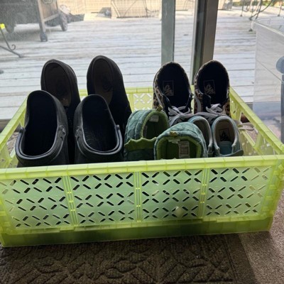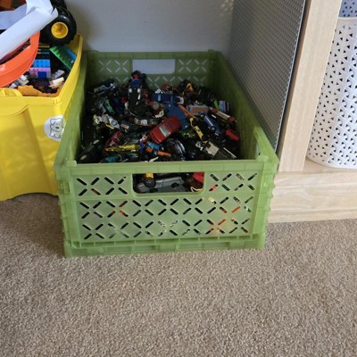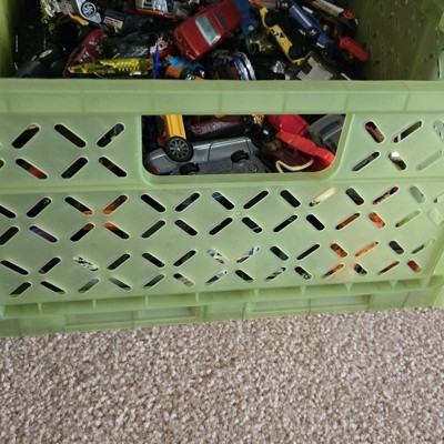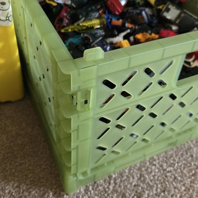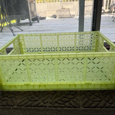 [This review was collected as part of a promotion.] This large foldable crate is excellent. The green color is so bright and fun. The crate folds down pretty small. I love that you can fold it up if you are not currently using the crate. I love that you can stack multiple crates together. I got one for each of my kids. I can throw toys in it or shoes. There is a smaller version that you can also stack onto. The crate would be great for college students. I received an incentive to write this review.