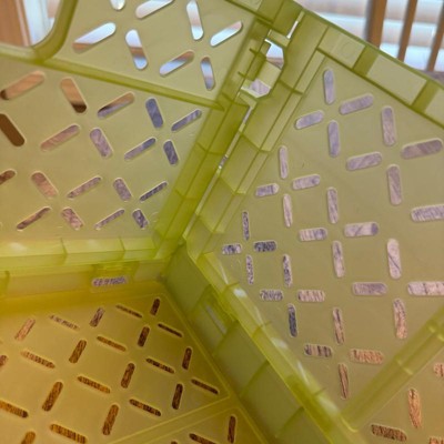 [This review was collected as part of a promotion.] I really like that this crate can be folded and put away. I love the light green color of the crate. The size is so great and can store so many things. The crate is deep and things don’t fall out when you carry this around. The crate is made of plastic so it doesn’t have a lot of weight to it. I use mine to organize my kids school work and homework so they know how to find supplies easily. I received an incentive to write this review.
