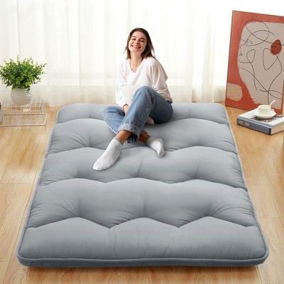 Foldable Full Size Futon Mattress Solid Floor Mat Japanese Floor Bed Tatami Mattresses for Dorm Living Room, Light Grey