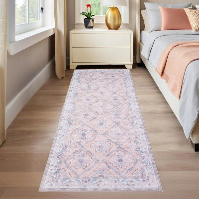 Foldable Washable Printed Area Rug,Modern Pearl Velvet Floor Runner with Double Border Design