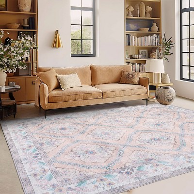 Foldable Washable Printed Area Rug,Modern Pearl Velvet Floor Runner with Double Border Design