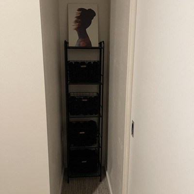 submitted byJenna Pink - 3 years agoA: Thank you for your interest in the Folding 5 Shelf Narrow Black. Dimensions (Overall): 60 Inches (H) x 14.75 Inches (W) x 12 Inches (D). I hope this shelf will work out for you. Have a great day! - Brenda