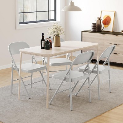 Folding Chairs 4 Pack, Metal Foldable Chair with Cushion and Non-Slip Feet Pads, Linen Party Chairs, for Meeting Room, Dining Room, Dark Gray