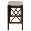 Pop-up productivity, this X-Design style desk is constructed from solid wood for lasting use. Equipped with an accompanying roll-out desk to maximize your workspace. Foldable design means effortless transportation and storage. No assembly required. Product dim (extended): 36"W x 18"D x 30"H. Folded dim: 36"W x 4.75"D x 30"H. Weight capacity: 100lbs (Top), 35lbs (Shelf). 3"H for the keyboard tray.