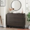 Folding Dining Table, Space Saving Farmhouse Dining Table for 4 Storage Shelf, 6 Wheels Multipose Expandable Kitchen Drop Leaf Table