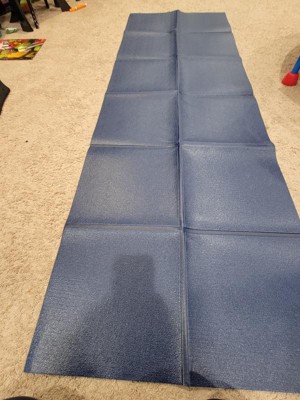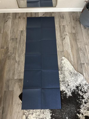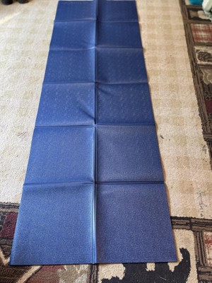 All In Motion really helps bring you into the fitness fold with this Navy Blue Folding Travel Yoga Mat with 3mm of height. This folding travel yoga mat has a great feel of softness, grip, and strength. I did not feel like I would slide during yoga or other exercises. It is great to be on and will hold to many yoga sessions and travel events. Even with only 3mm of height, it still felt like a had comfort while on the floor. Tests of pulling on this folding travel yoga mat did not result in any tears or loss of form/stability. Lastly, the folding travel yoga mat has ample dimensions. 2 feet wide and 6 feet provides able coverage of being off the floor. This folding travel yoga mat from All in Motion is great.