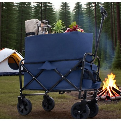 Folding Wagon Garden Shopping Beach Cart (Blue)