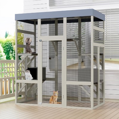 Folding Wooden Chicken Coop & Rabbit Hutch, Portable Small Animal Cage, No Assembly Needed, Easy Access Doors, Lightweight & Durable