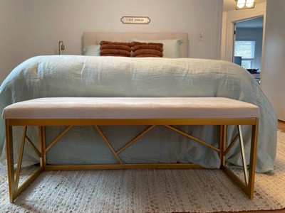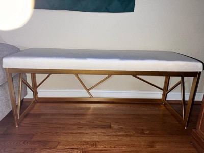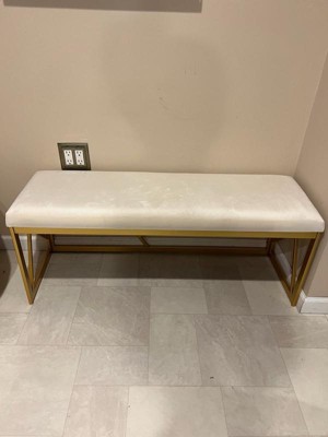 [This review was collected as part of a promotion.] Putting this bench together took about 30 minutes, and was relatively easy. The velvet fabric on this is very soft and thick so it feels luxe. The gold color of the base is more muted which I like since shiny gold often feels tacky. The seat itself is also thick and comfortable. Overall, I’m very happy with the quality of this product.
