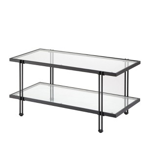 Lifestorey Folio Metal and Glass Coffee Table Black: Urban Style, 2-Tier, Tempered Shelf, Powder-Coated Finish