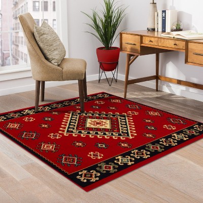 Folk Diamond Geometric Floral Rustic Eclectic Casual Bohemian Power-Loomed Indoor Area Rug, 5'x5', Red - Blue Nile Mills