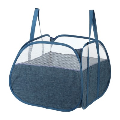 Folkulture Laundry Basket, 70L Blue Laundry Hamper, 100% Cotton Foldable Tall Woven Rope Basket with Sturdy Handles, Baby, Kids for Storage