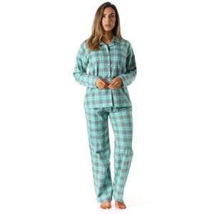 - LOOK PRETTY IN PLAID: Class up your downtime with the eye-catching colors and prints of our plaid flannel pajamas collection thats accentuated by a stylish notch collar. Choose between beautiful shades of pink, jade and grape that come in classic horizontal plaid, or pinkberry, grey, and blue ice that are brought to life by unique diagonal plaid.