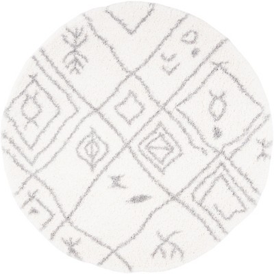 Fontana Shag FNT833 Power Loomed Indoor Area Rug - Ivory/Grey - 6'7" Round - Safavieh