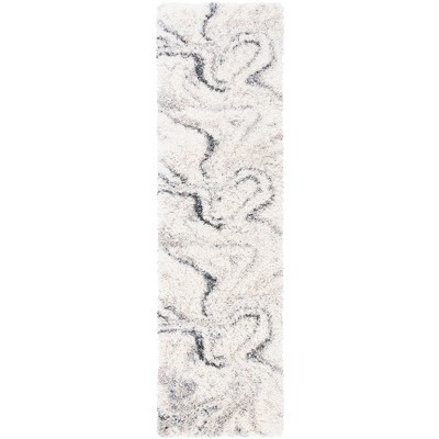 Fontana Shag FNT842 Power Loomed Indoor Runner Rug - Ivory/Grey - 2'3"x12' - Safavieh