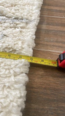I looked long and hard to find a rug I wanted to add gray somehow without redoing all of my deccor. This rug has just enough fray in it to accomplish that. I first bought a smaller 3x5 and used it in a sitting area by my staircase. When I first opened it I thoought it may be too creamy ivory, but once on my dark hardwood floors it looked much more "white/off white" and exactly what I wanted. the rug looks really nice and is very very soft. After stairing at that little rug for a week, I went ahead and ordered the 10 x 14 and so happy I did. It came today and I rolled it out, vaccumed it and it looks just beautiful. So soft under my feet, my little dogs love it and I came downstaiirs and found my teeneage son laying on it, running his hands through it. We have a very large family room area and I was waiting to see which rug and size I wanted before addding a pad, but will get that under it asap and will make it that much more cushy. I have an dyson animal vaccum (purple one) and it does push through it, but, not gonna lie you need some muscle to get it done. The first vaccum job was the toughest and I have vaccumed it a few times now to get it all fluffed up and it is fairly easy to push it through now. I have tried so many rugs, flat rugs, shag rugs, patterned, etc. Bought rugs from many, many stores and thought I wanted something flater , but none of them looked right. I went out on a limb with this one and it payed off. love it and it really did change my "look" wiithout changing everything. It also give the texture that I needed in such a big room