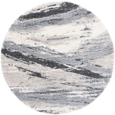 Fontana Shag FNT856 Power Loomed Indoor Area Rug - Grey/Ivory - 6'7" Round - Safavieh