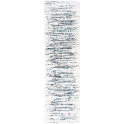 Fontana Shag FNT873 Power Loomed Indoor Runner Rug - Ivory/Teal - 2'3"x10' - Safavieh