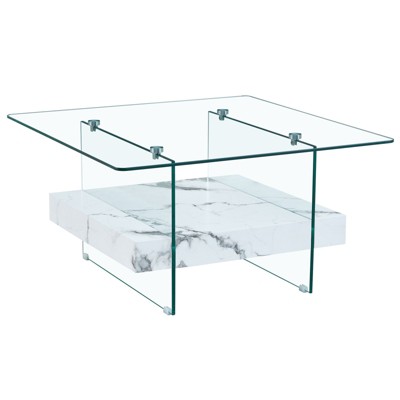 Product Name: FONTOI 31.4" Two-Tier Coffee Table with Marble Pattern Sticker, Side Table for Living Room, Easy to Clean, Black&Transparent, 31.4"*16.6"*31.4"